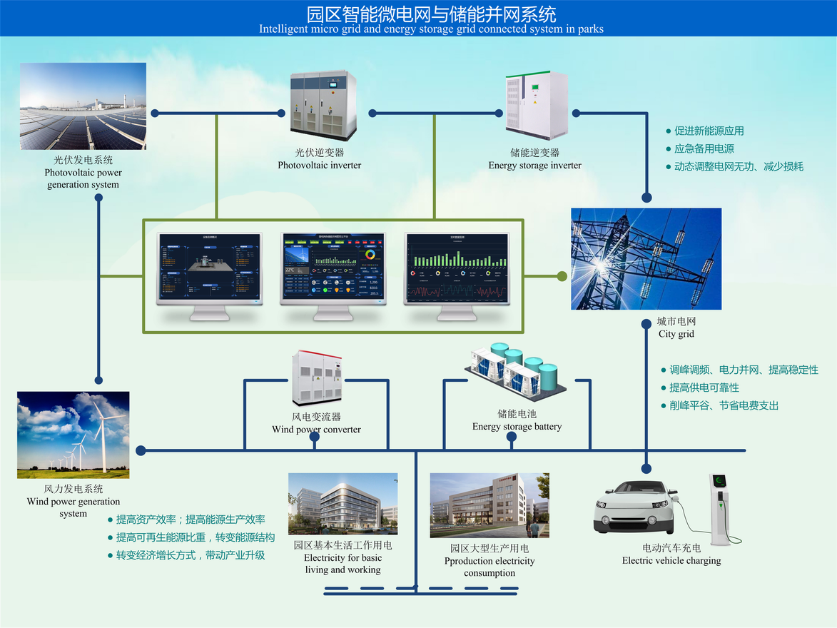 工商业级智慧光储系统适用于大中小各类规模的工业园区、政府大楼、写字楼、学校、商场、收费站、交通枢纽等。该光储系统充分利用园区闲置屋顶进行光伏发电,以光伏和储能供应园区日夜用电,利用峰谷电价差来节省园区峰值电费,有效管控电费账单;满足自用同时,园区还可申请并网进行短期电力交易,实现园区能源系统经济效益最大化;还可作为地方微电网示范项目,带动光伏绿电的推广,以带动地方能源体系全面绿色转型!